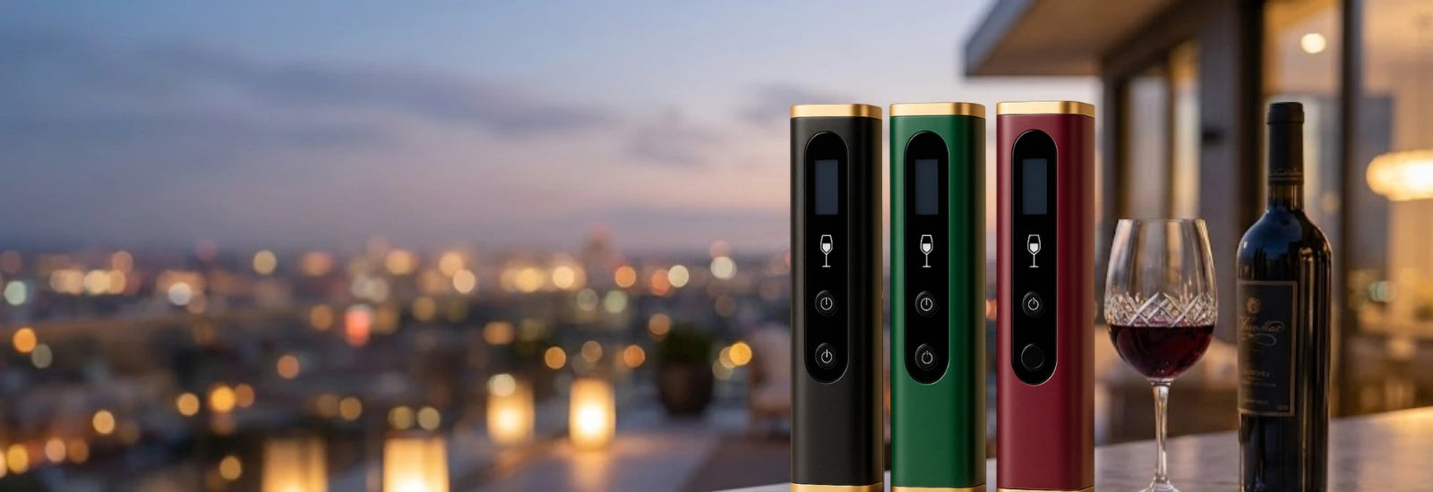 Descubre el aireador de vinos sin contacto Kairos en colores rojo, negro y verde. Eleva tu experiencia enológica con estilo y pureza.